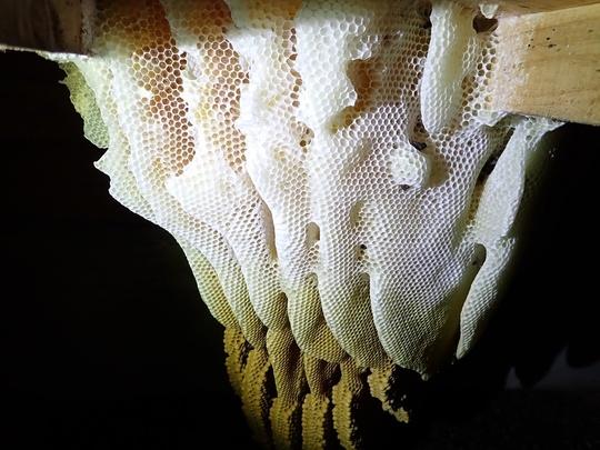 蜂を駆除してみると、そこには立派なミツバチの巣。