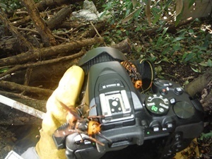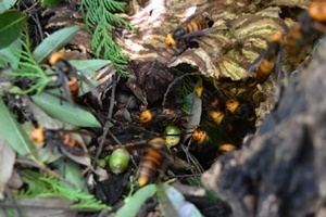 巣にいた蜂や戻りバチも9割以上駆除した後でもこうやって襲われます。オオスズメバチの駆除は最後まで一瞬の油断もできません。